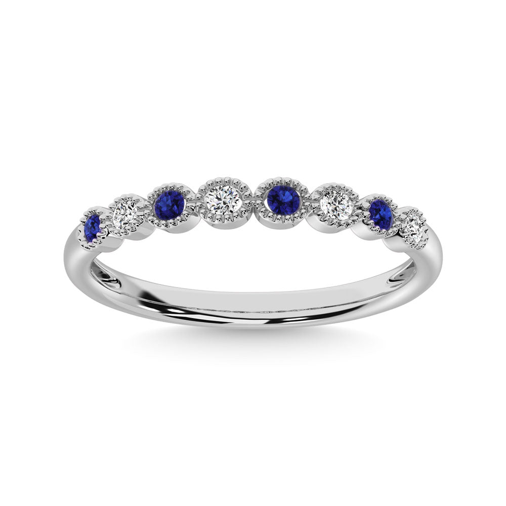 Diamond 1/5 Ct.Tw. & Alternate Blue Sapphire Band in 14K White Gold