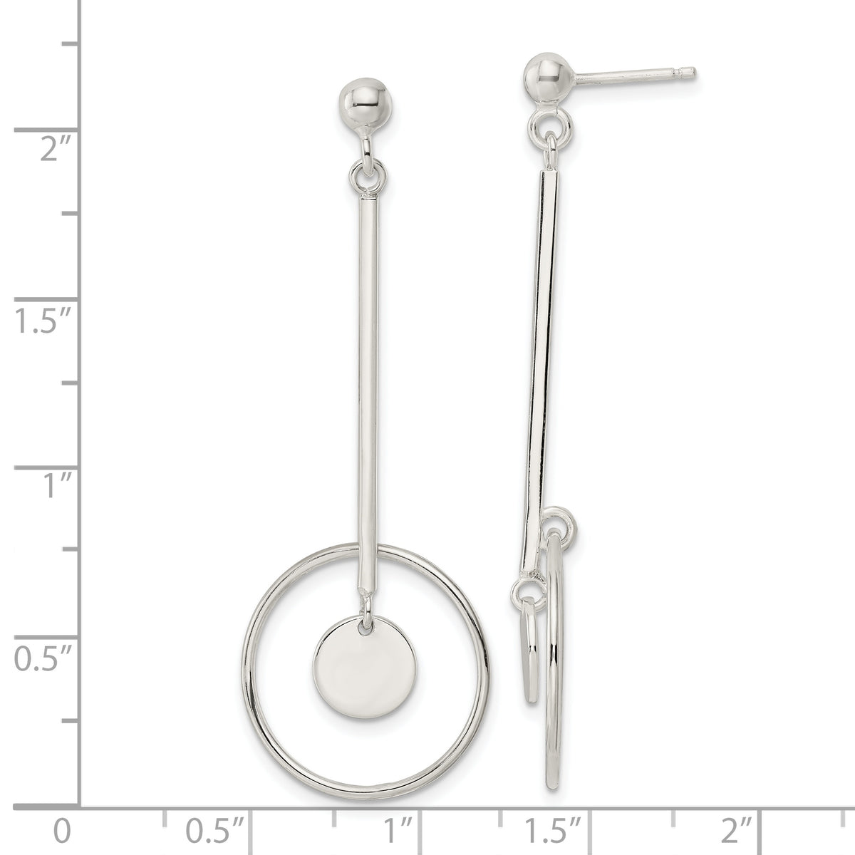 Sterling Silver Bar and Circle Dangle Post Earrings
