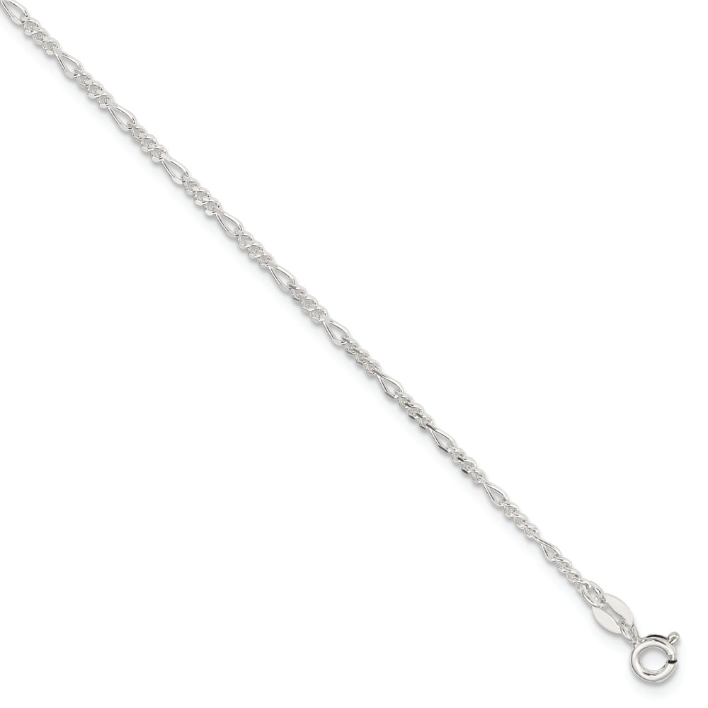 Sterling Silver Diamond Cut Polished Figaro 9in Plus 1in ext. Anklet