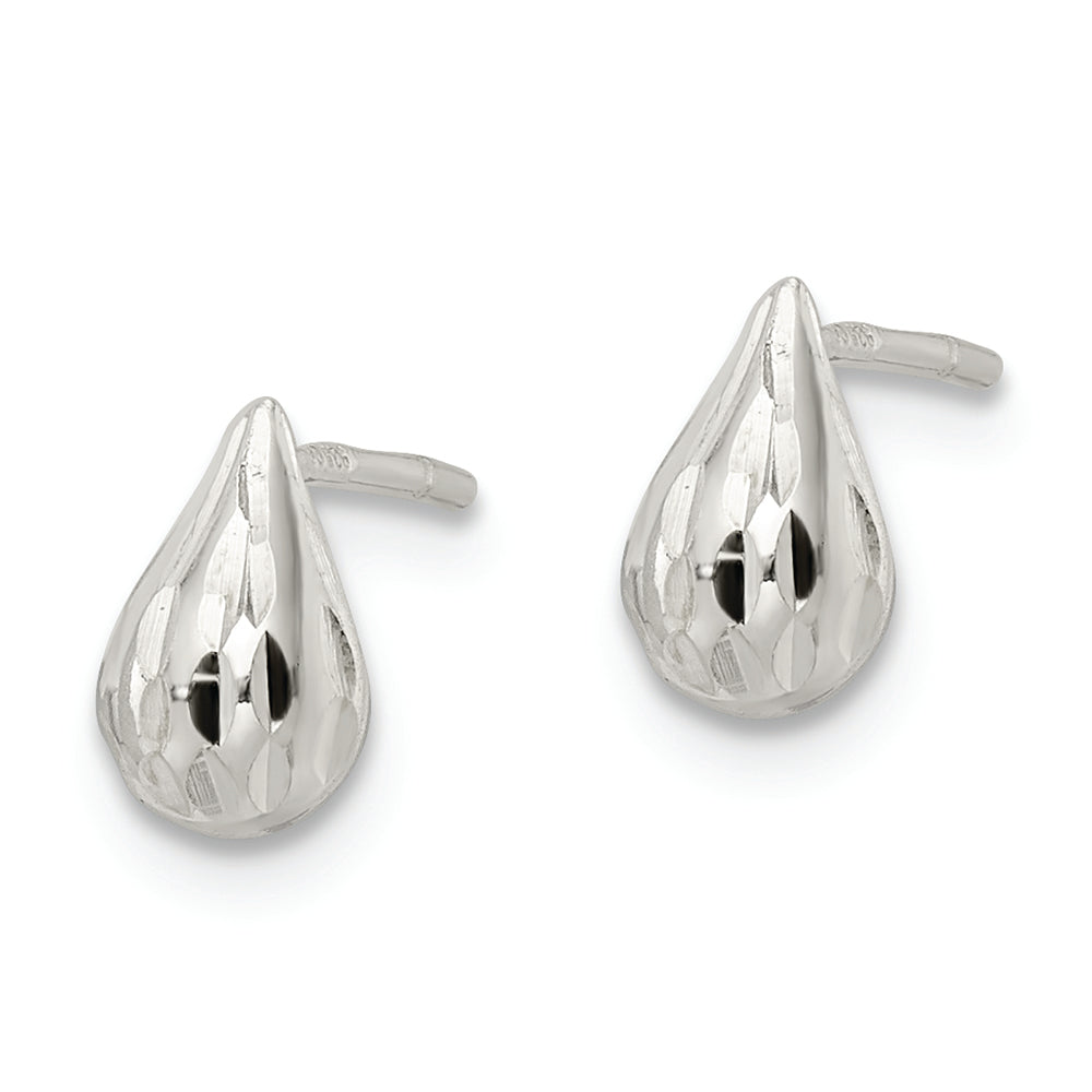Sterling Silver Diamond-cut Teardrop Post Earrings