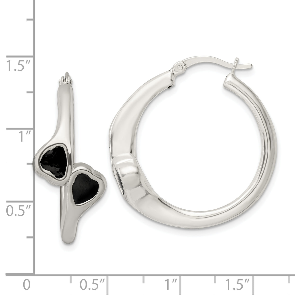 Sterling Silver Polished Black Enameled ByPass Circle Hoop Earrings