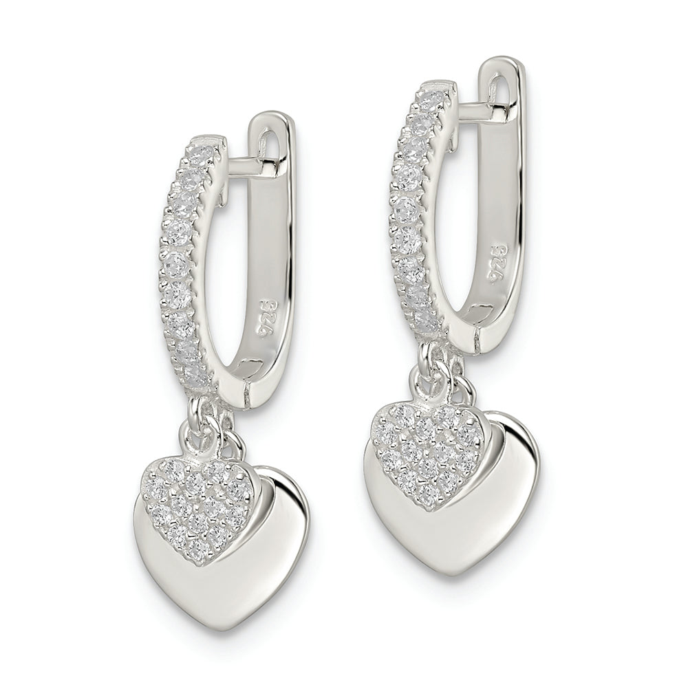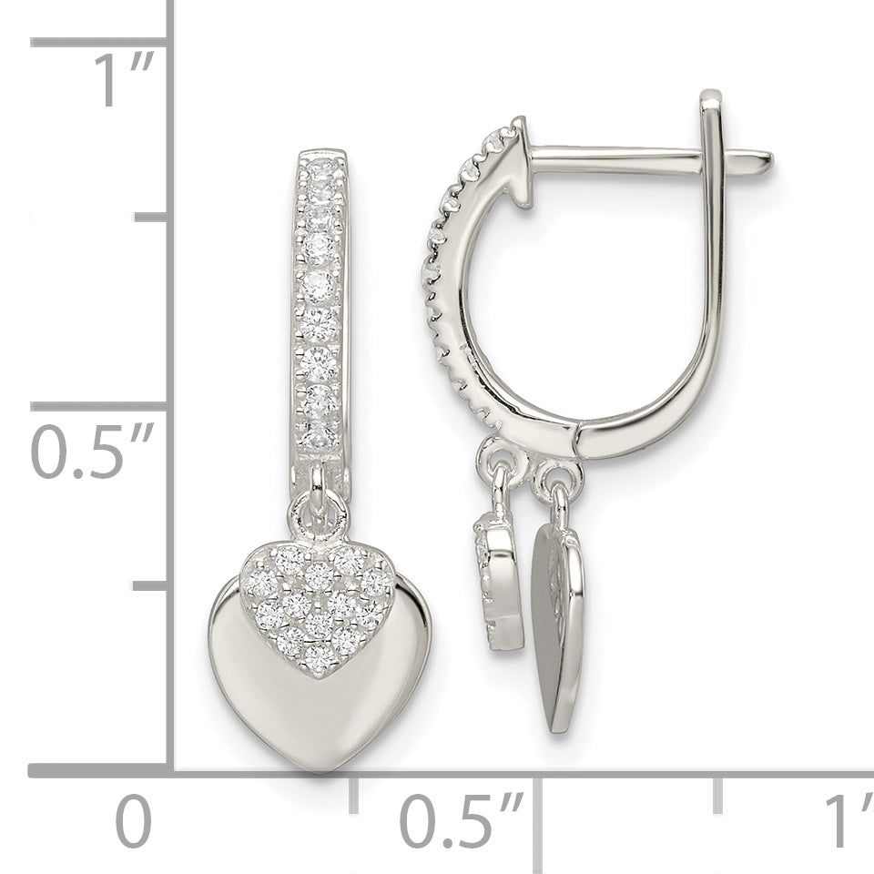 Sterling Silver Polished CZ Dangle Hearts Hinged Hoop Earrings