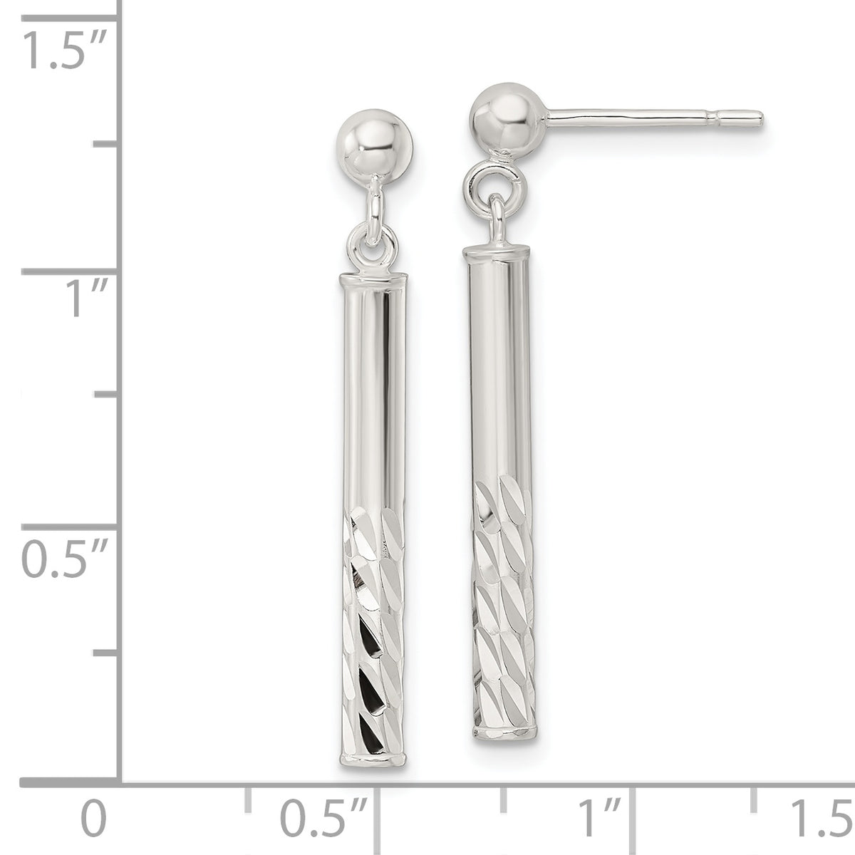Sterling Silver Polished & Diamond-cut Bar Post Dangle Earrings