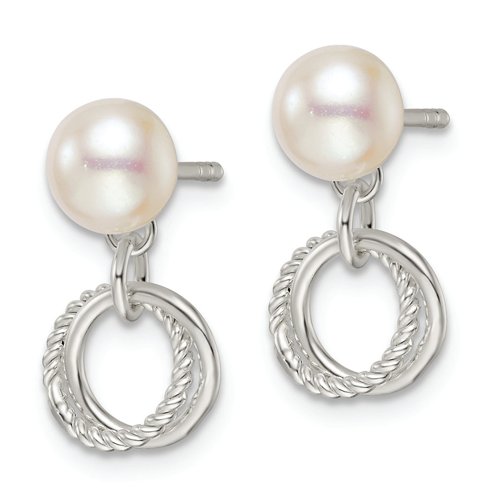 Sterling Silver Polished Glass Pearl Dangle Post Earrings