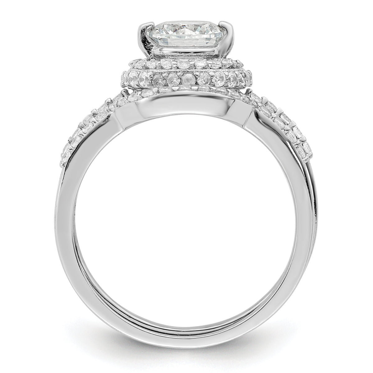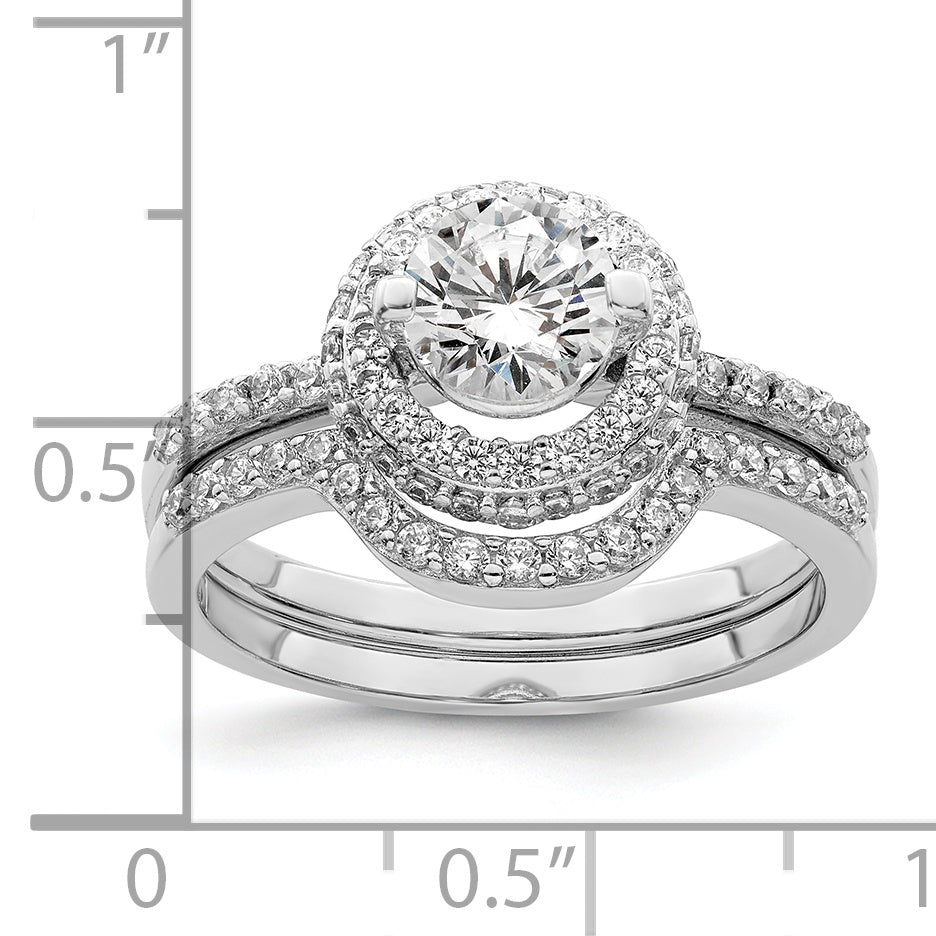 Sterling Silver Rhodium-plated CZ Halo Engagement Ring & Band Set