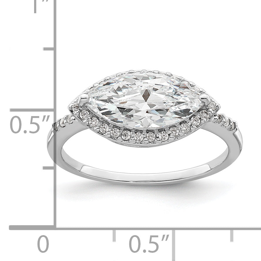 Sterling Silver Rhodium-plated Marquise Halo CZ Ring
