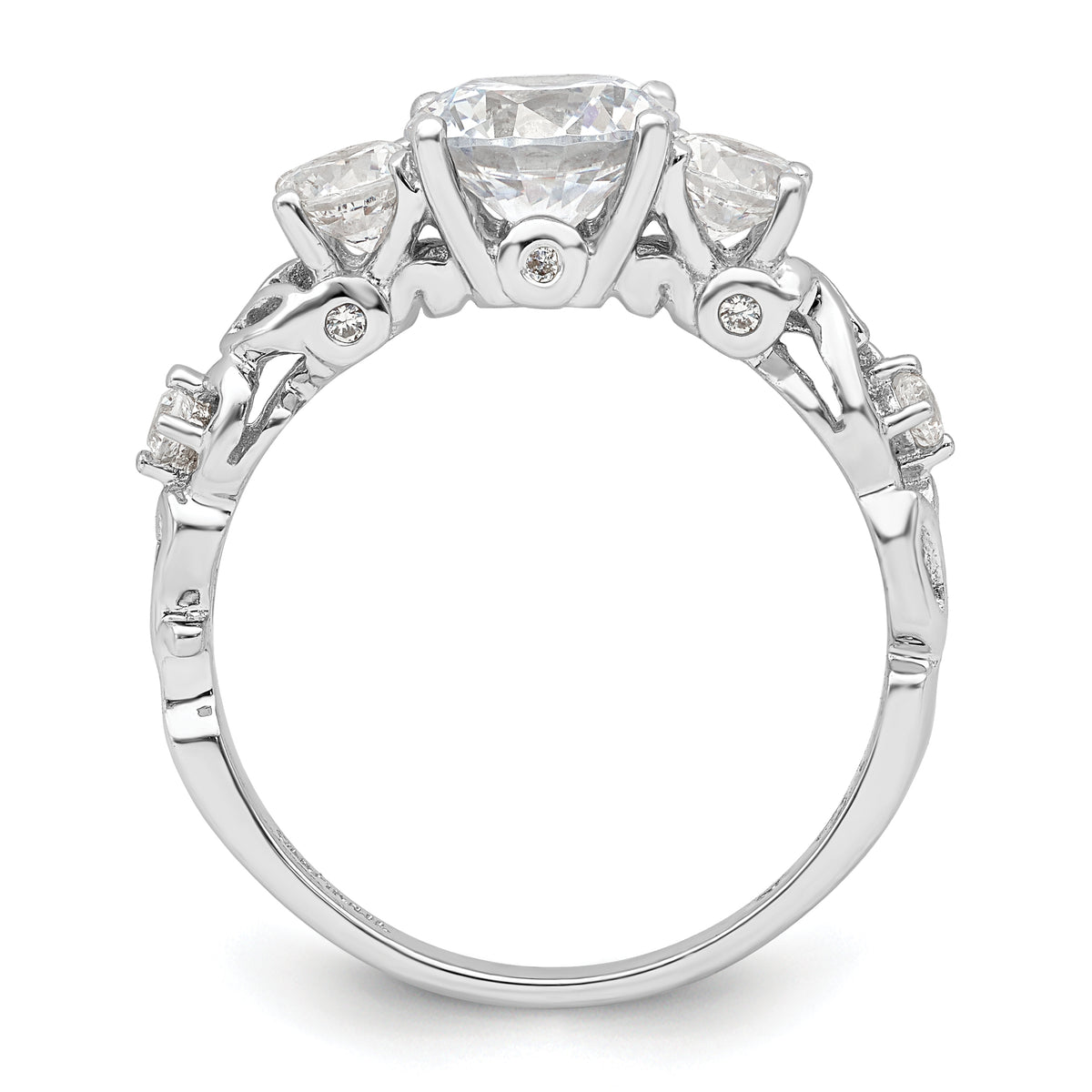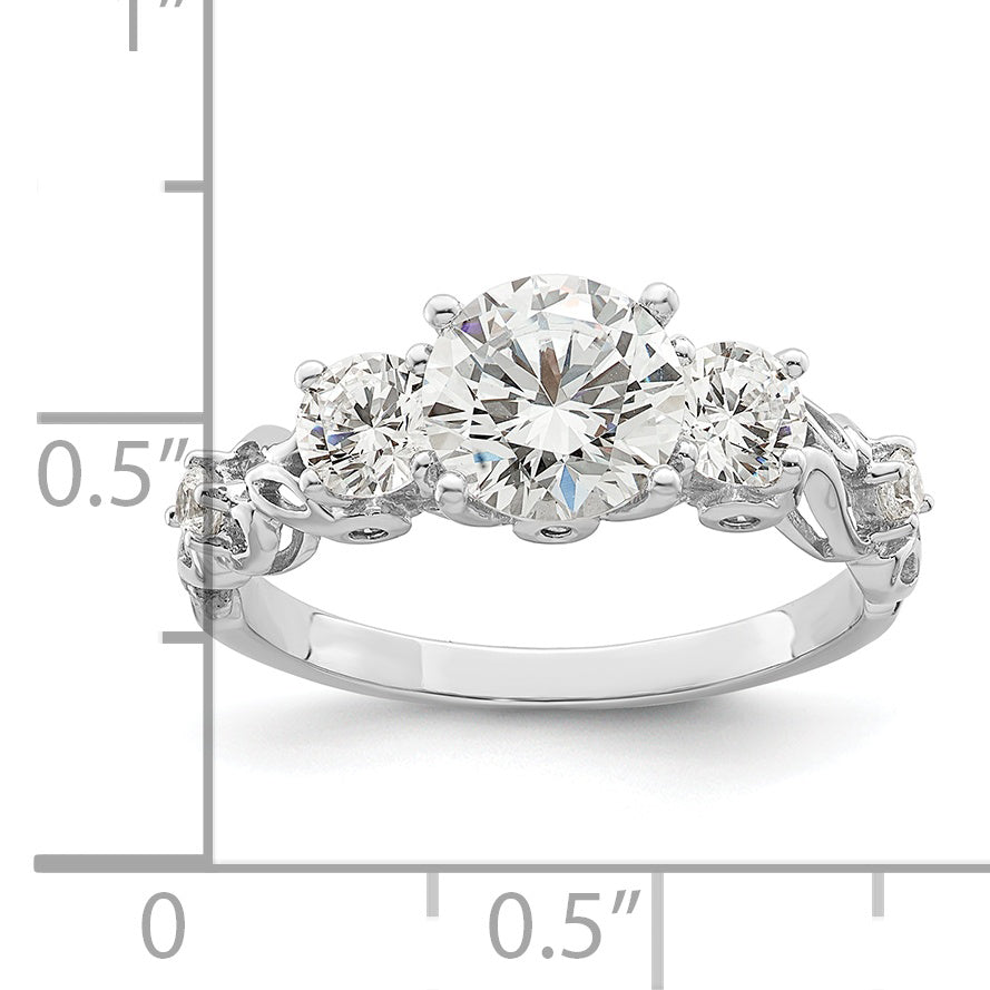 Sterling Silver Rhodium-plated Three Stone CZ Ring