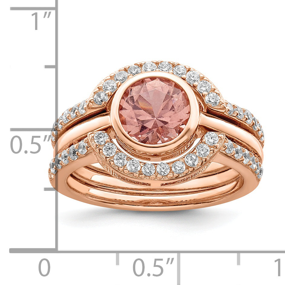 Sterling Silver Rose Tone CZ 3 Ring Set