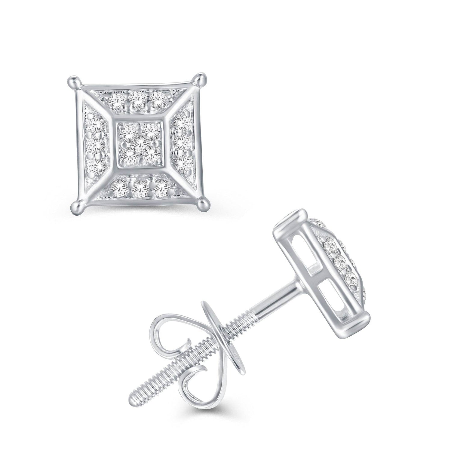 10 Karat White Gold 0.15 Carat Diamond Square Earrings