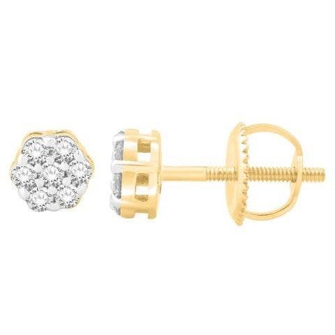 10 Karat Yellow Gold 0.25 Carat Diamond Flower Earrings