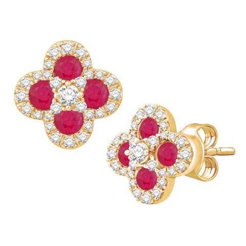 14 Karat Yellow Gold 1.21 Carat Diamond (0.81 Ruby) Flower Earrings