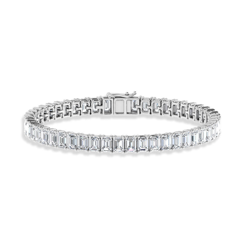 14K White Gold 14 Ct.Tw. Labgrown Diamond Vertical Emerald Shape Tennis Bracelet