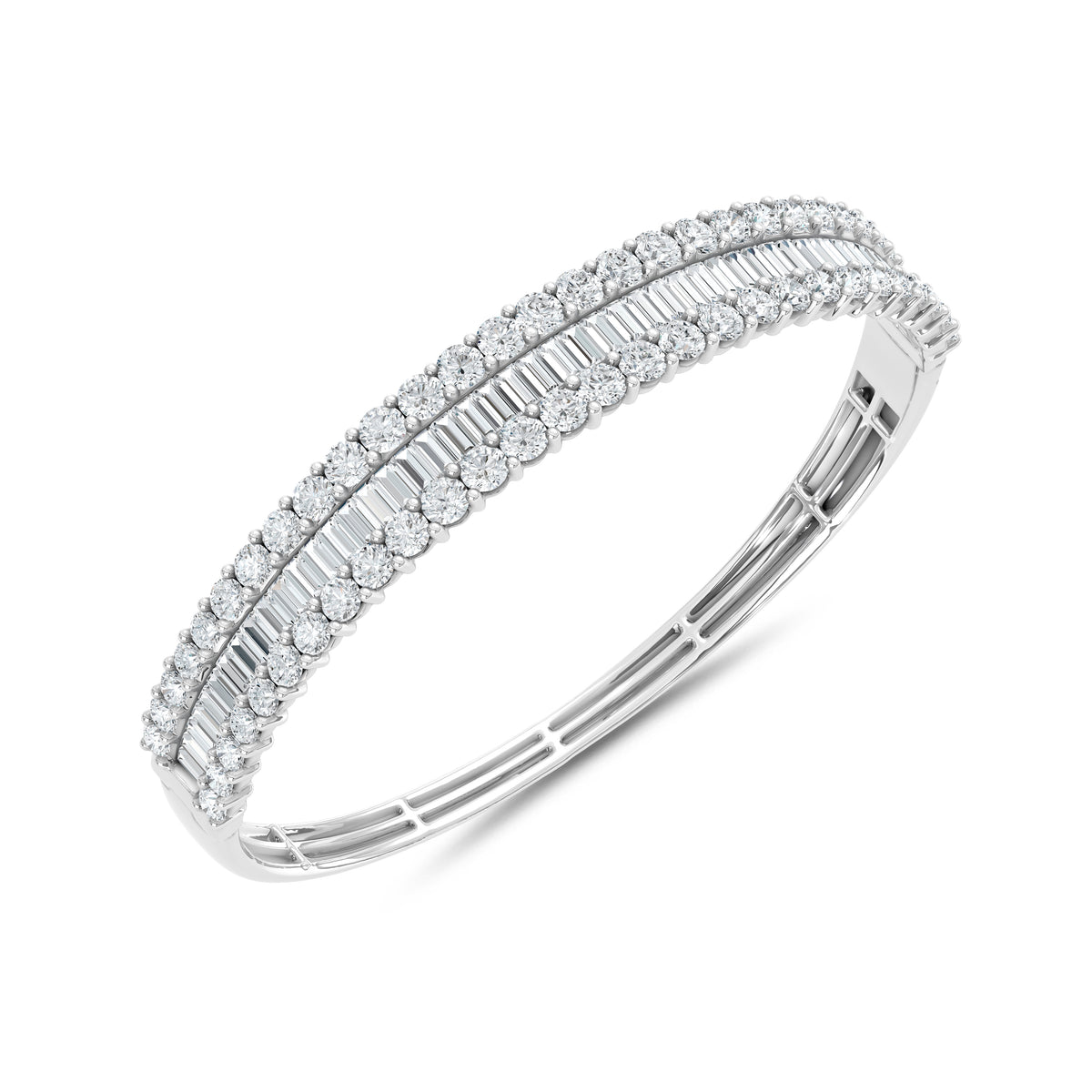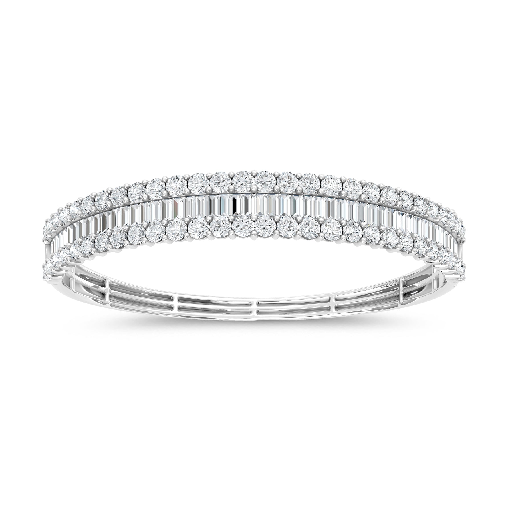 14K White Gold Lab Grown Diamond 10 Ct.Tw. Round and Baguette Bangle
