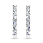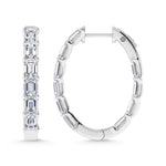 14K White Gold 4 Ct.Tw. Lab Grown Diamond Vertical Emerald Shape In and Our Hoop Earrings