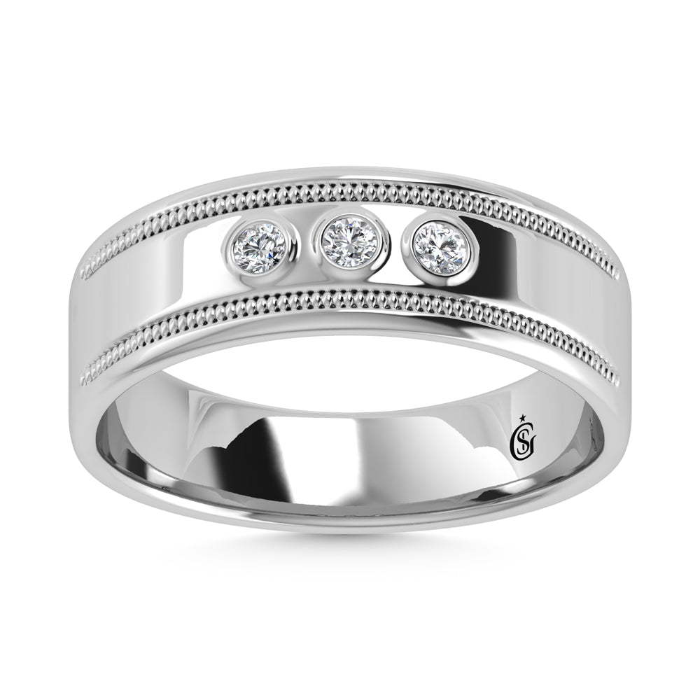 10K White Gold Diamond 1/10 Ct.Tw. Machine Set Mens Band