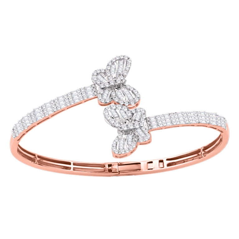 10 Karat Two-Tone (Rose and White) Gold 1.50 Carat Diamonds Butterfly Bypass Bangle