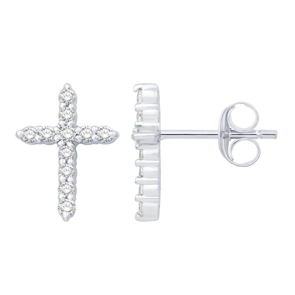 14 Karat White Gold 0.34 Carat Diamond Cross Earrings