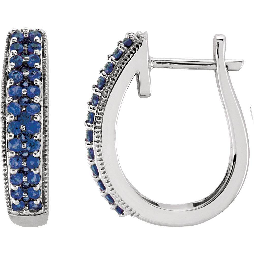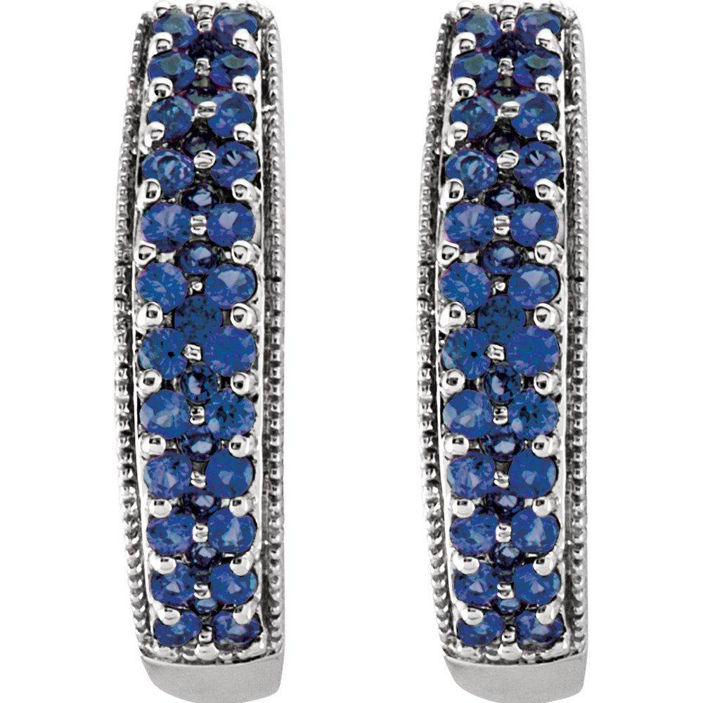 14K White Gold Natural Blue Sapphire Hoop Earrings