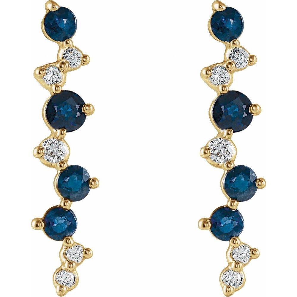 14K Yellow Gold Blue Sapphire & Diamond Earrings – 1/10 CTW Natural Elegance