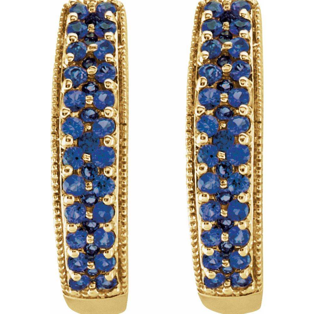 14K Yellow Gold Natural Blue Sapphire Hoop Earrings