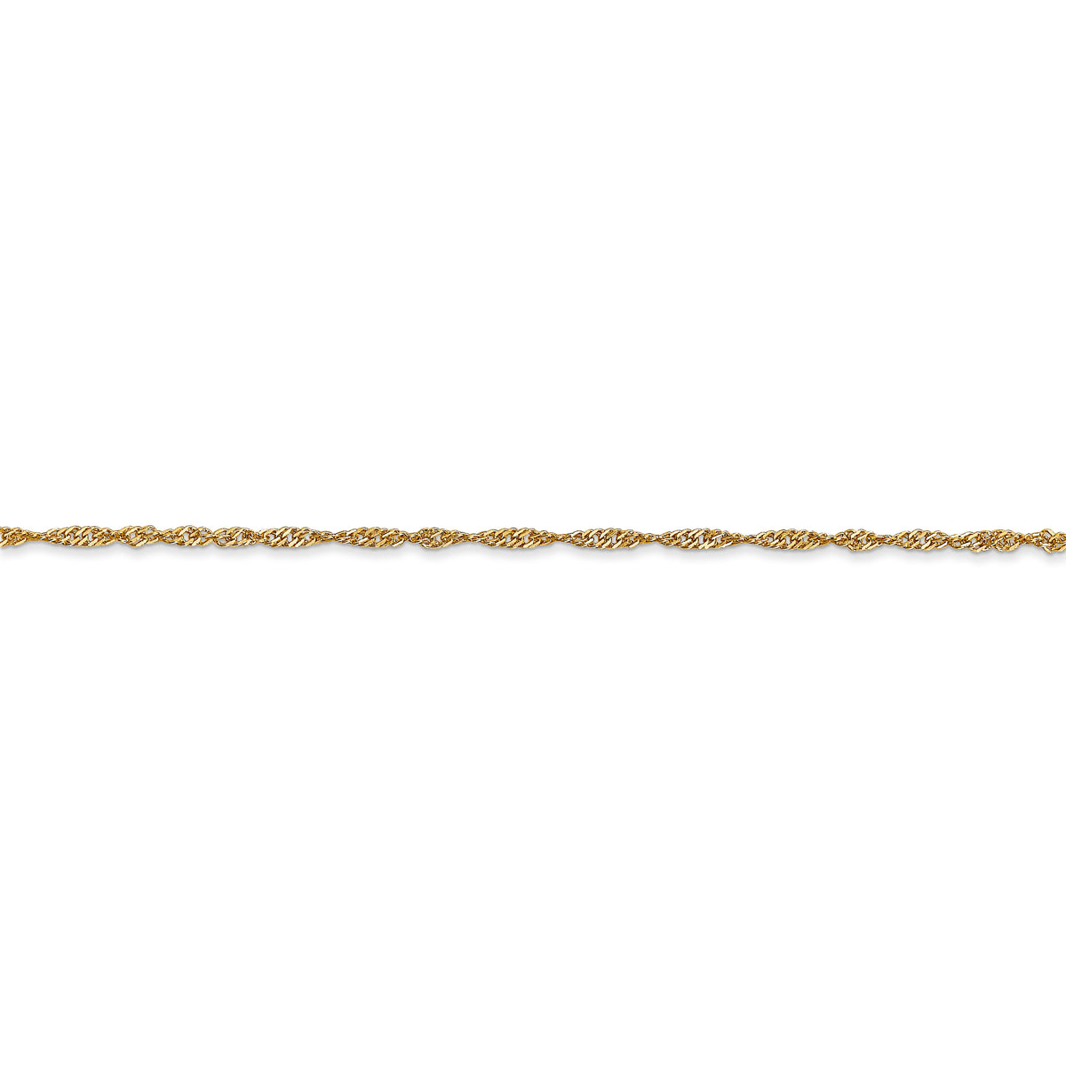 This 16-inch Singapore chain features a 1.4mm width crafted from 14K yellow gold, secured with a spring ring clasp for a refined finish.