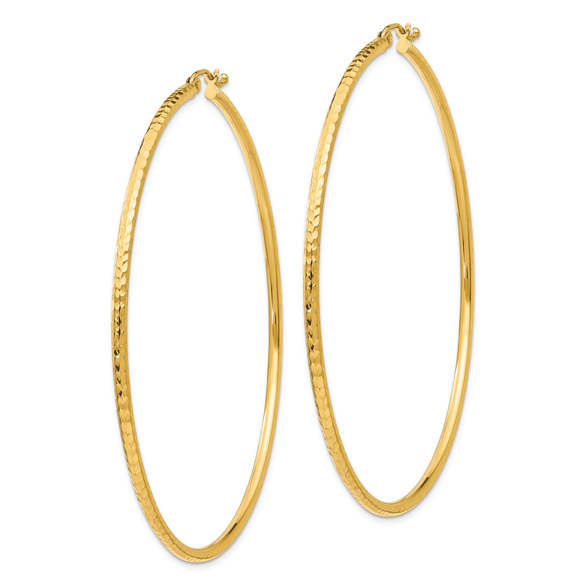 14k Diamond-cut 2mm Round Tube Hoop Earrings