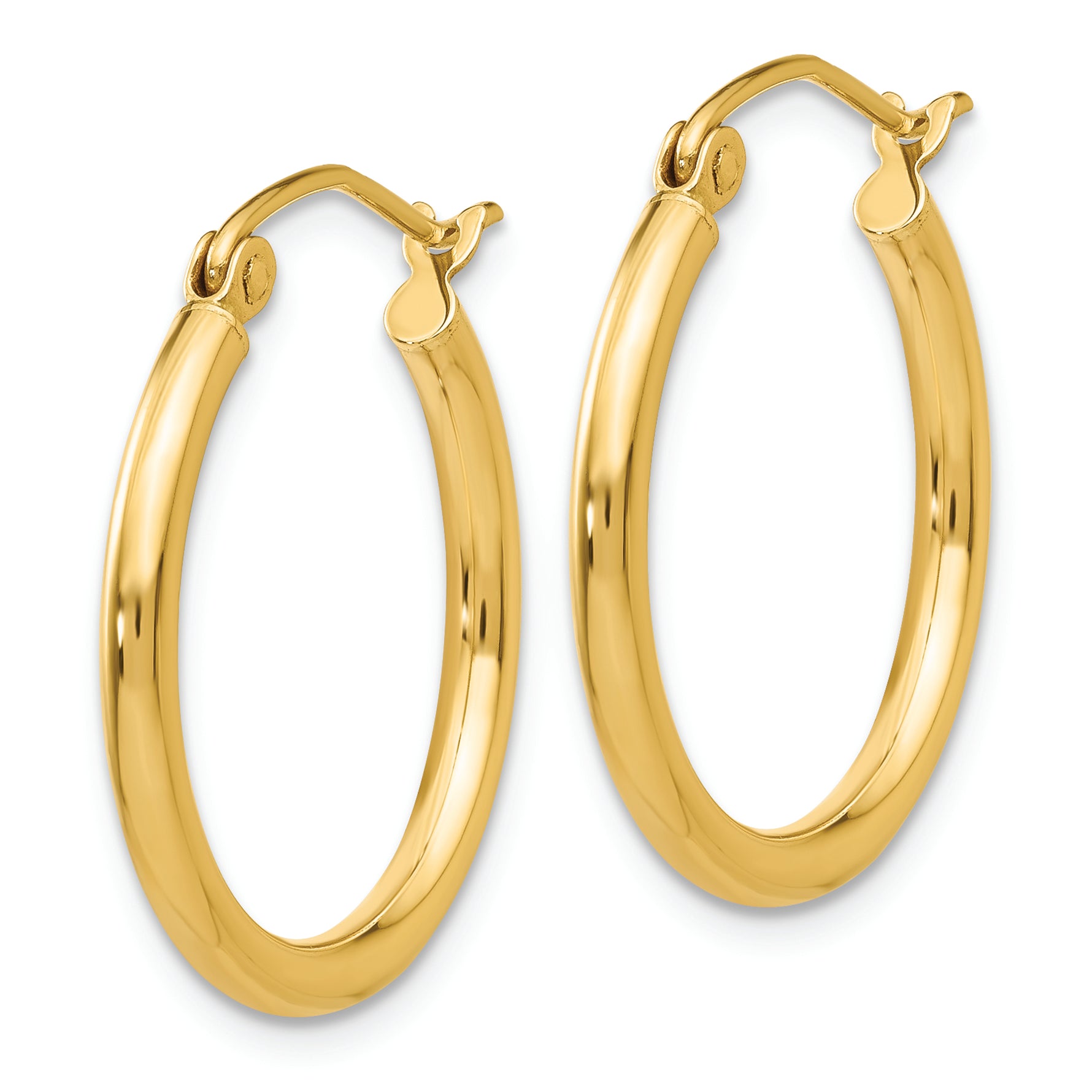 14K Yellow Gold 2x20mm Tube Hoop Earrings – Lightweight & Polished