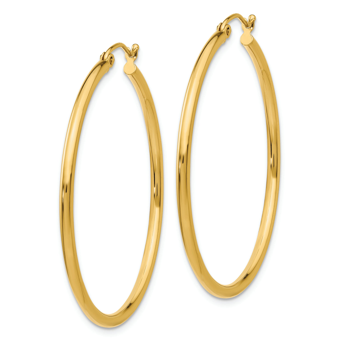 14k Polished 2x40mm Lightweight Tube Hoop Earrings