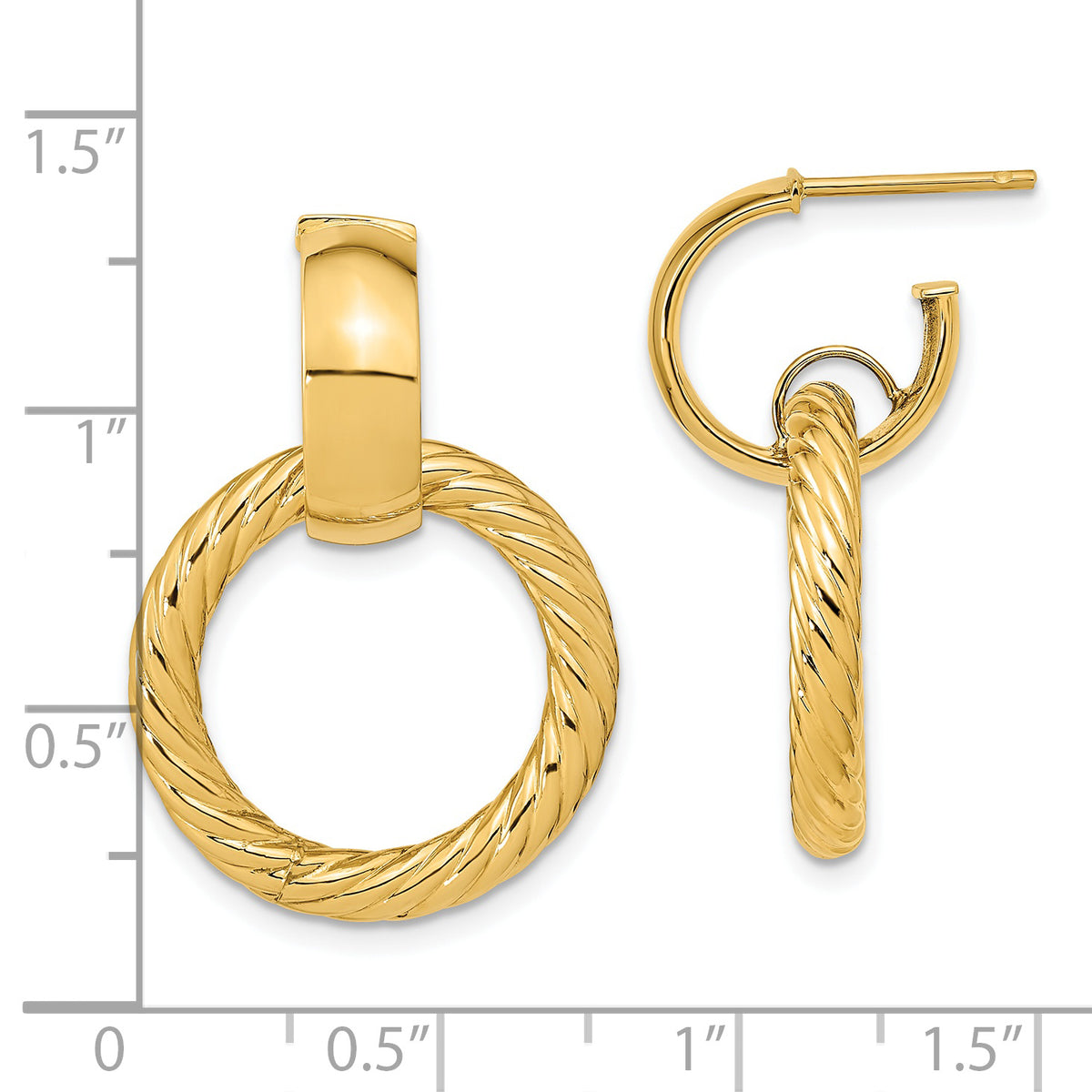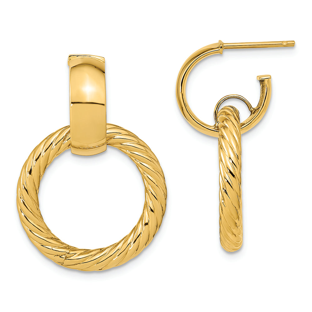 14K Polished and Textured Fancy Dangle Post Hoop Earrings