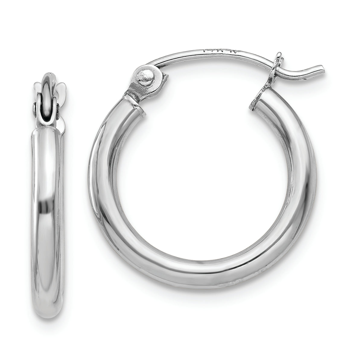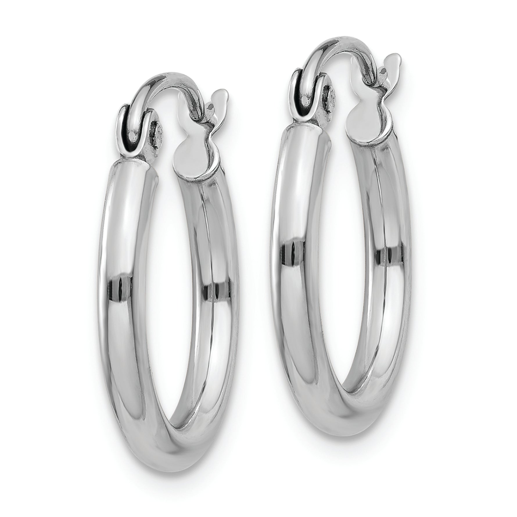 14k White Gold Polished 2x15mm Lightweight Tube Hoop Earrings
