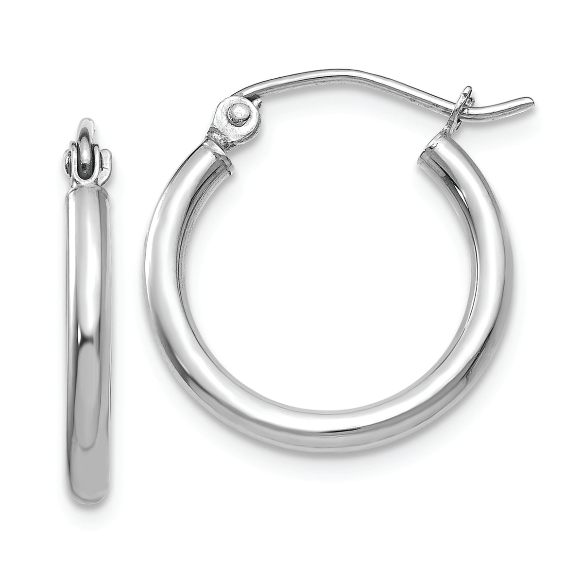 14k White Gold Polished 2x17.5mm Lightweight Tube Hoop Earrings