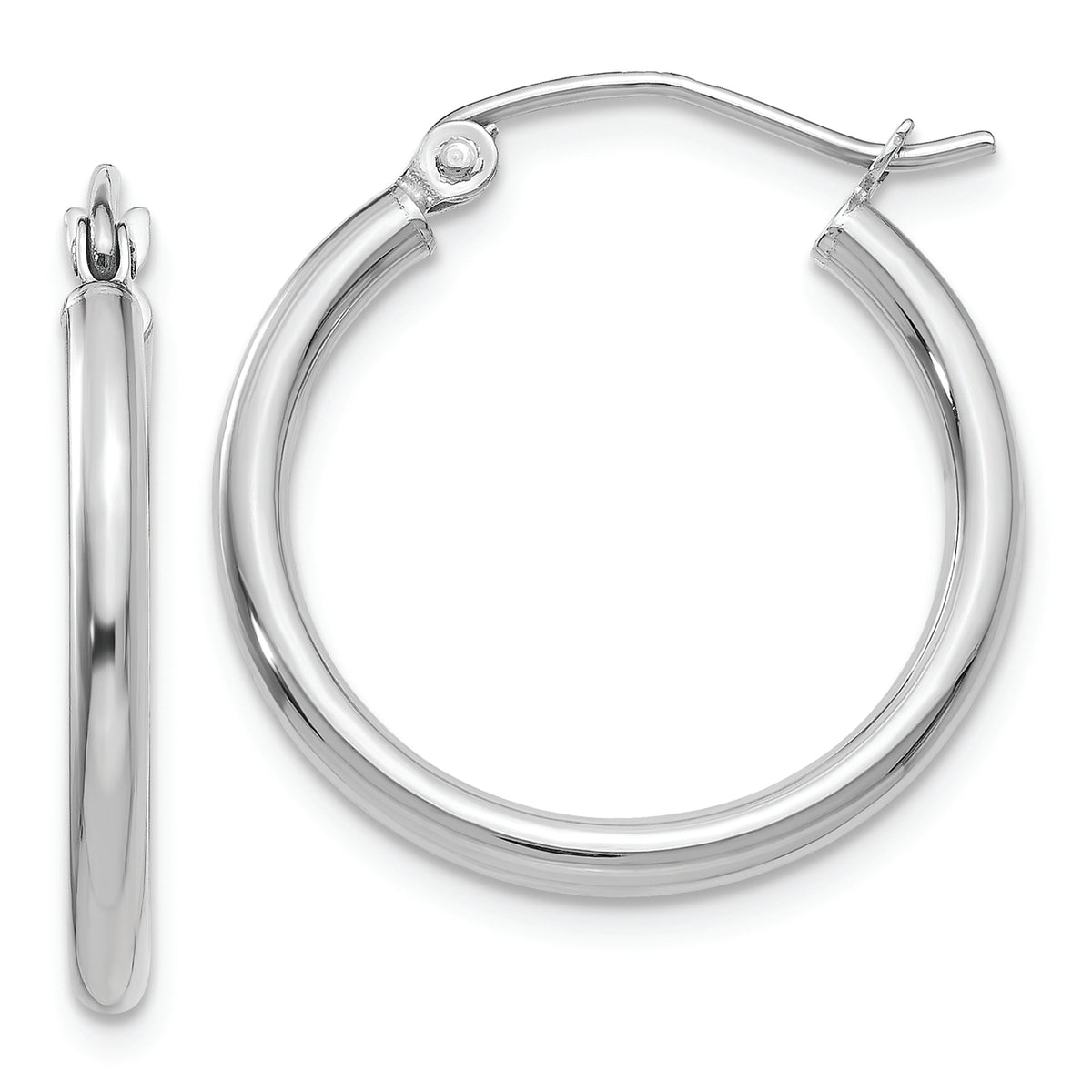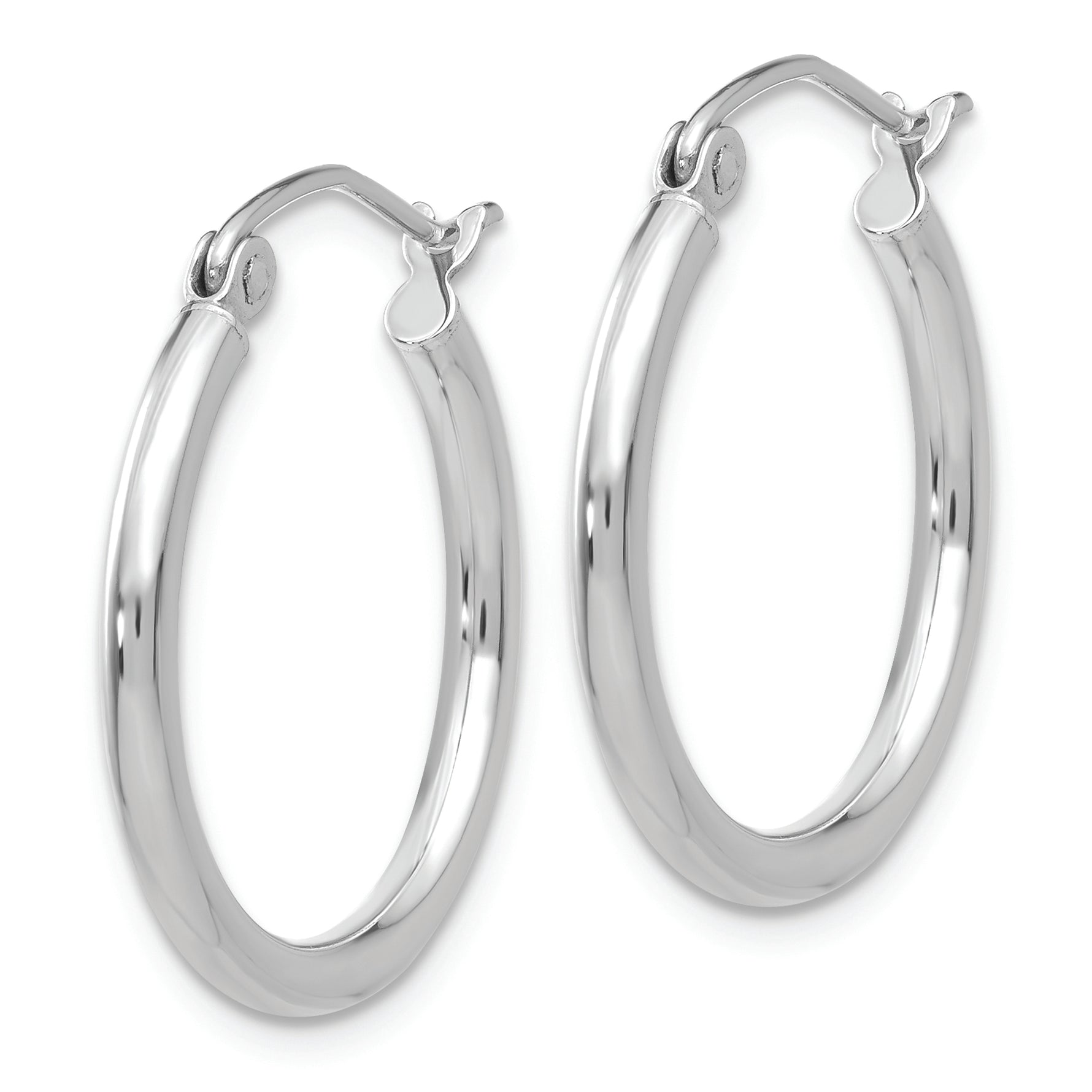 14k White Gold Polished 2x20mm Lightweight Tube Hoop Earrings