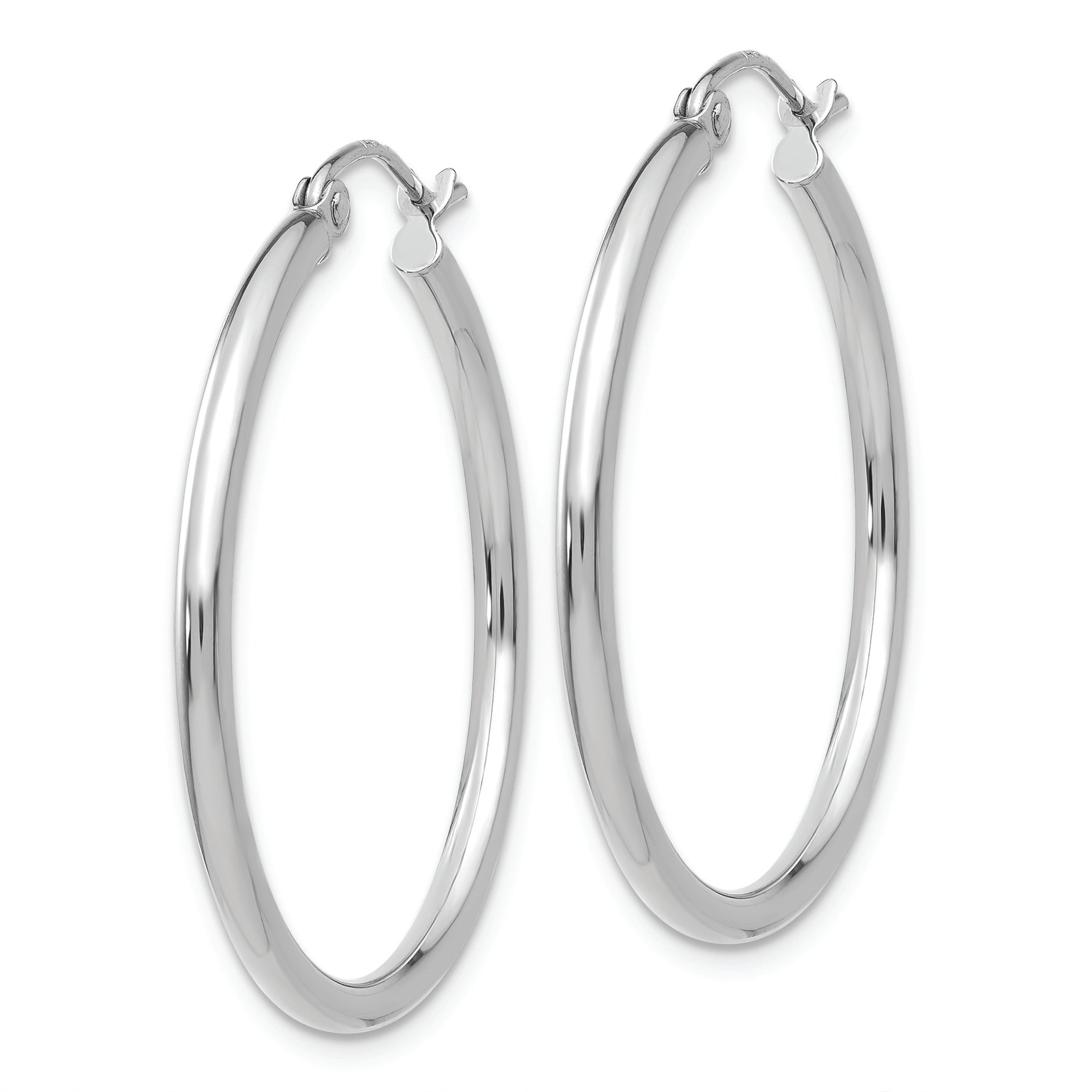 14k White Gold Polished 2x30mm Lightweight Tube Hoop Earrings