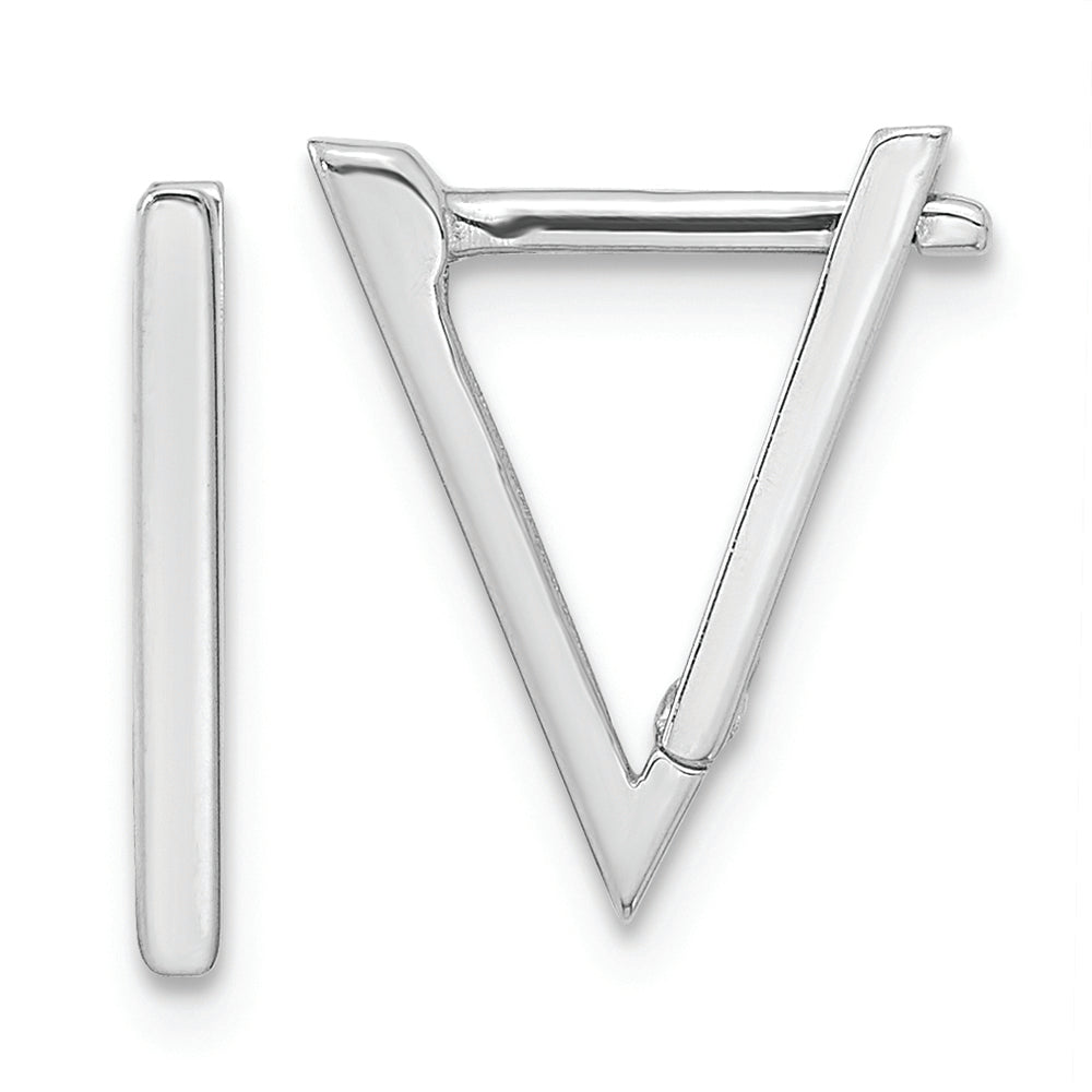 14K White Gold Polished Triangle Hoop Earrings