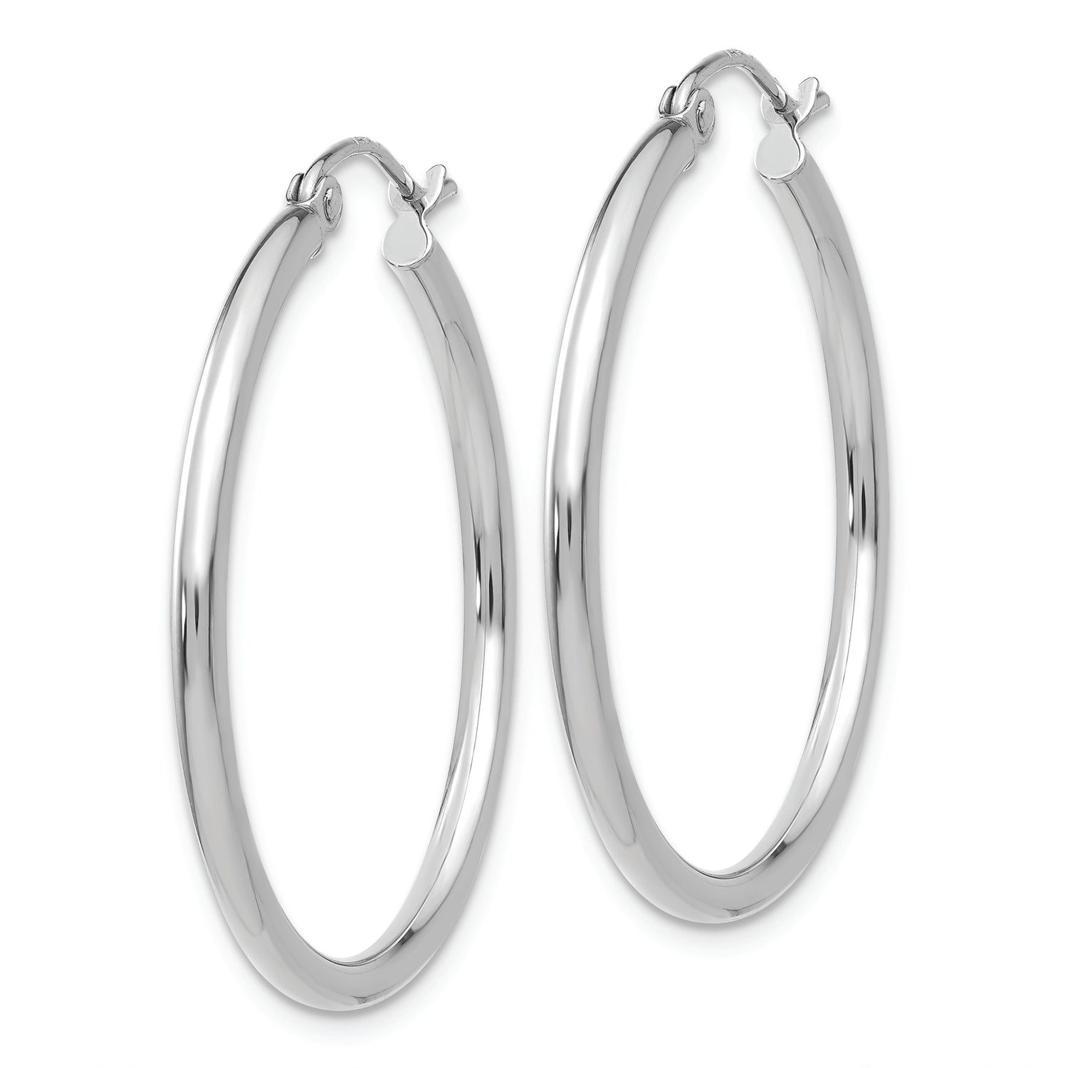 Unit price per14k White Gold Polished 2x30mm Lightweight Tube Hoop Earrings