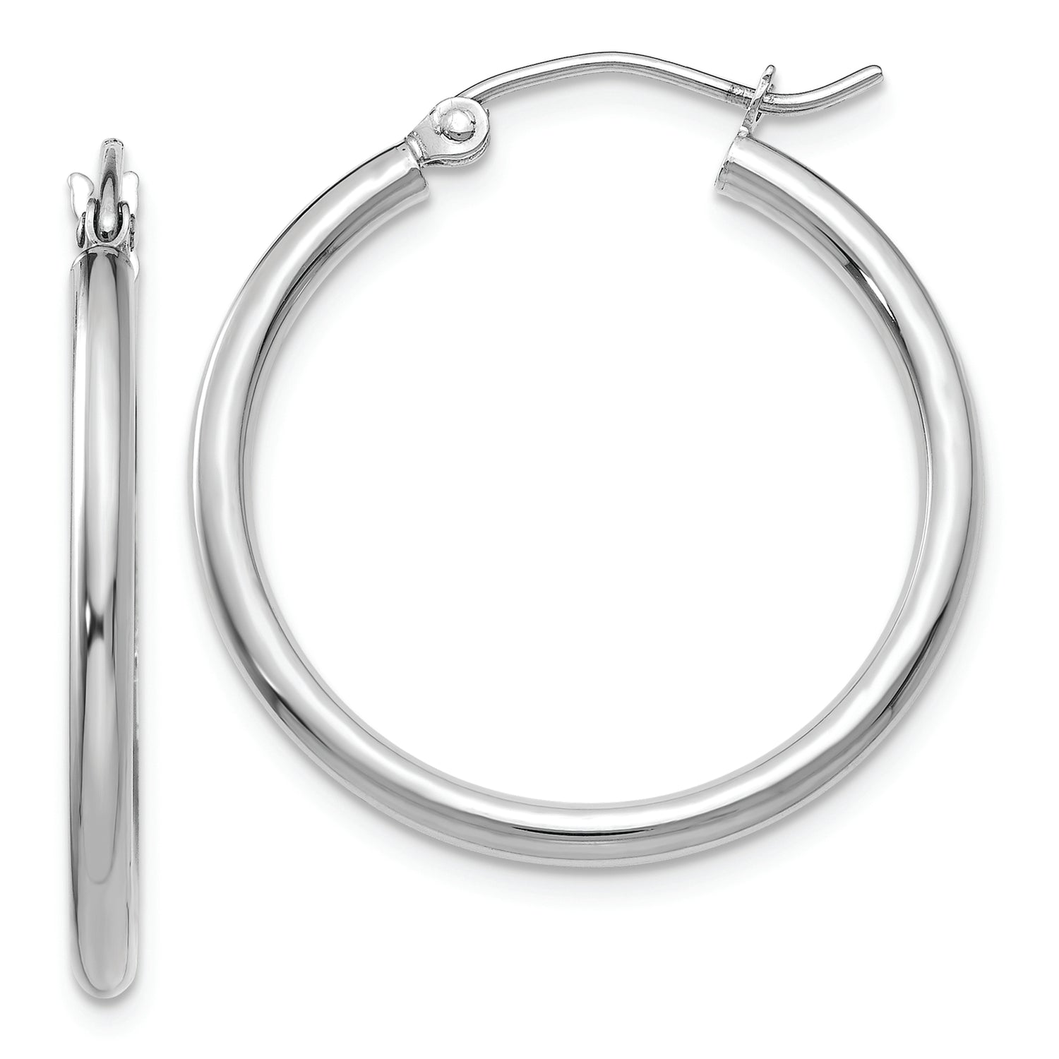 Unit price per14k White Gold Polished 2x25mm Lightweight Tube Hoop Earrings