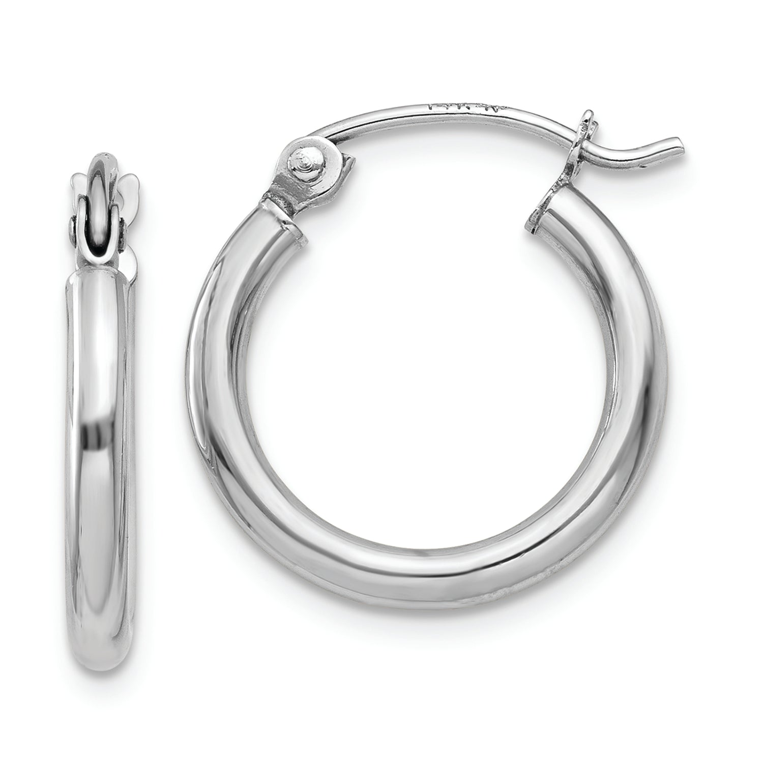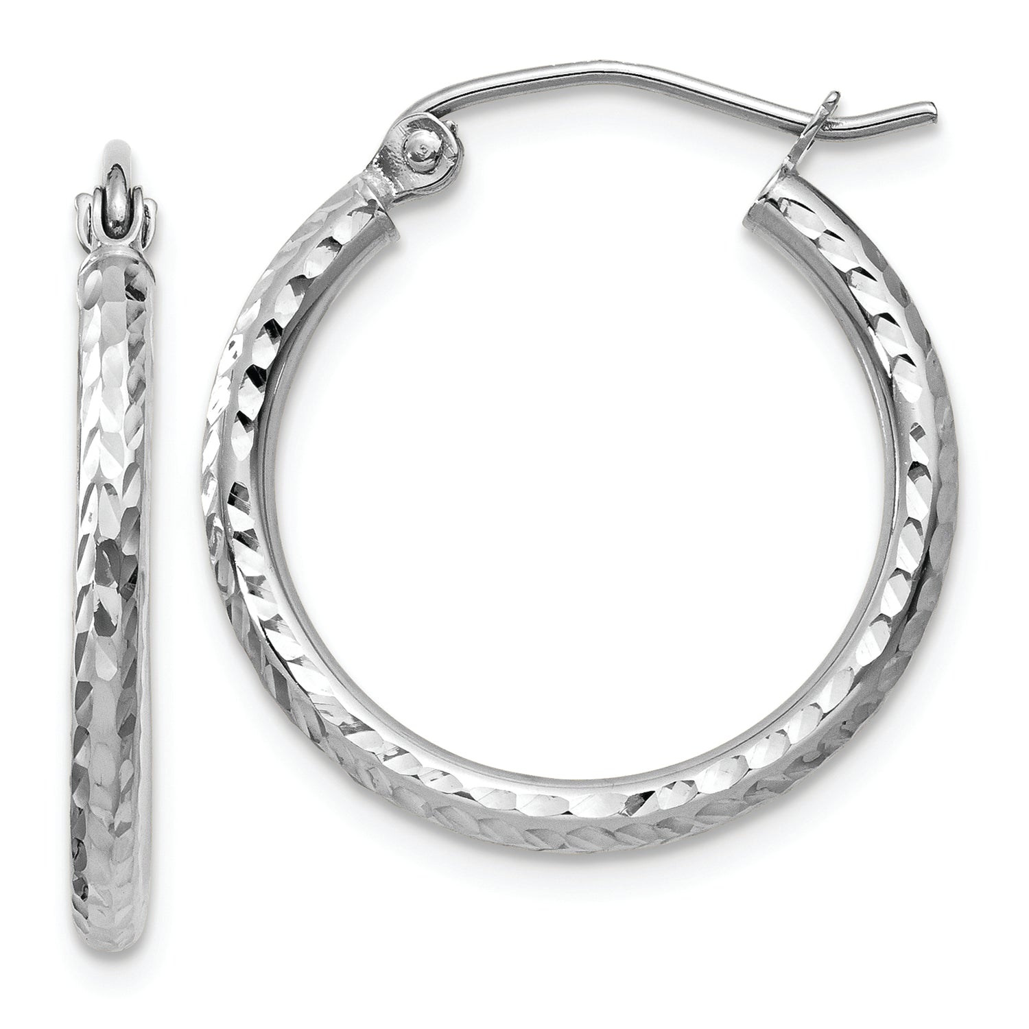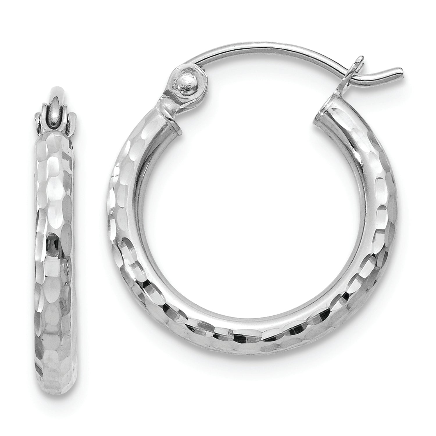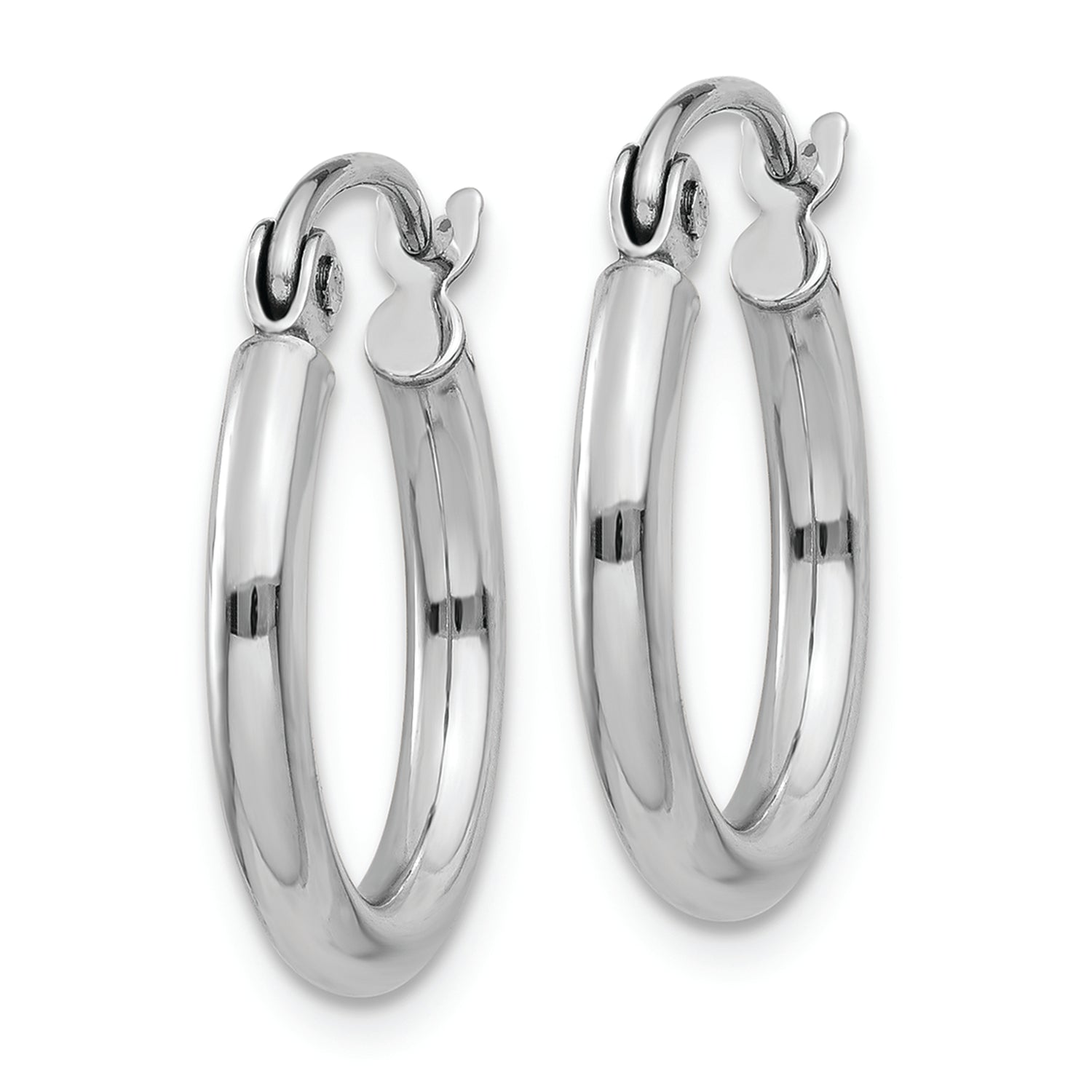 14k White Gold Diamond-cut 2mm Round Tube Hoop Earrings