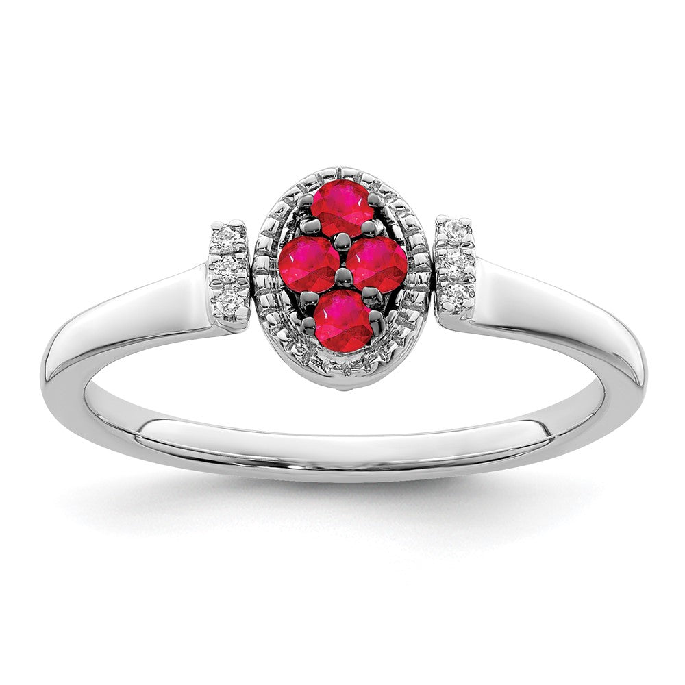 14k White Gold Polished Ruby and Diamond Flip Ring