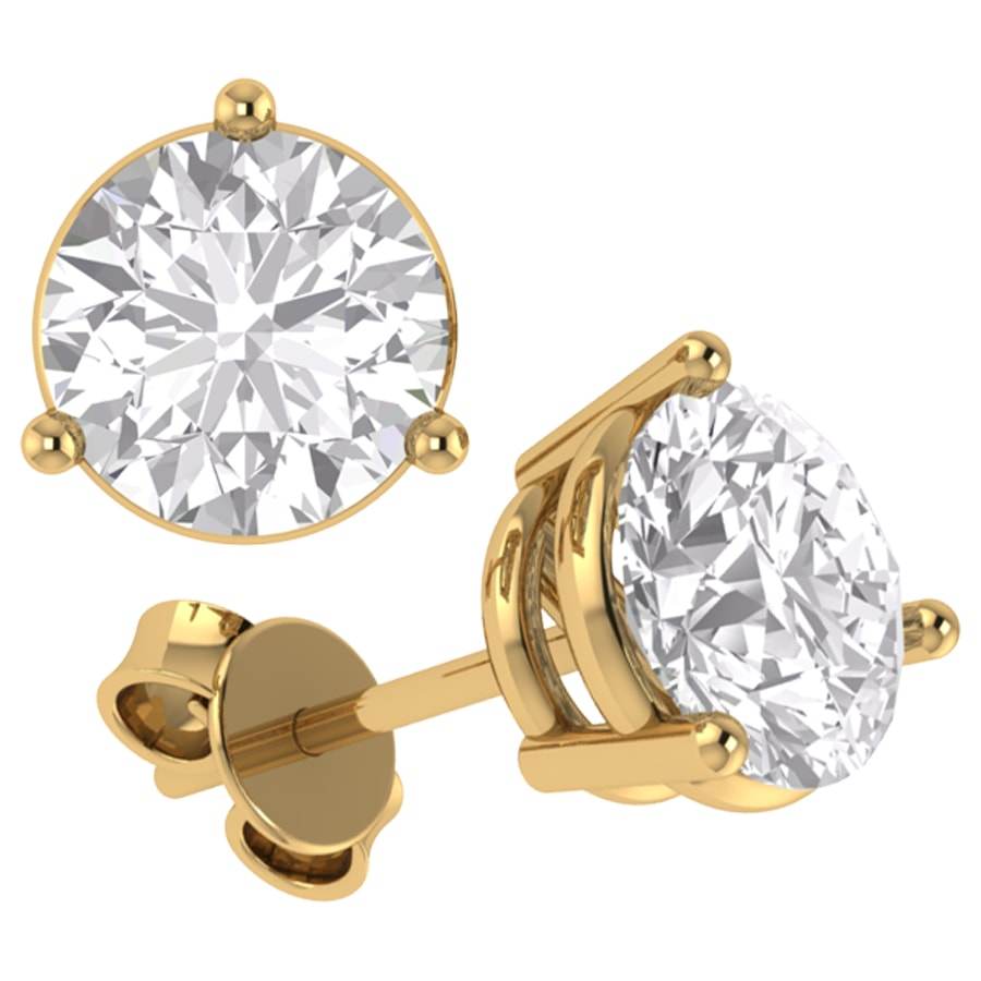 10 Karat Yellow Gold 2.03 Carat Diamond Round Earrings