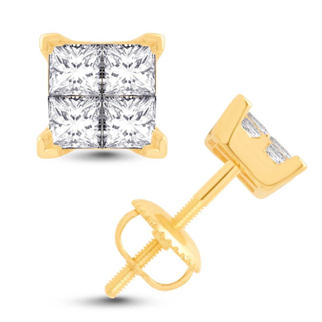 10 Karat All Yellow Gold 0.49 Carat Diamond Square Earrings