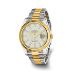 Pre-owned Rolex Independently Certified Men's 41mm Two-tone Oyster Date just II with Silver Dial and 18K Fluted Bezel