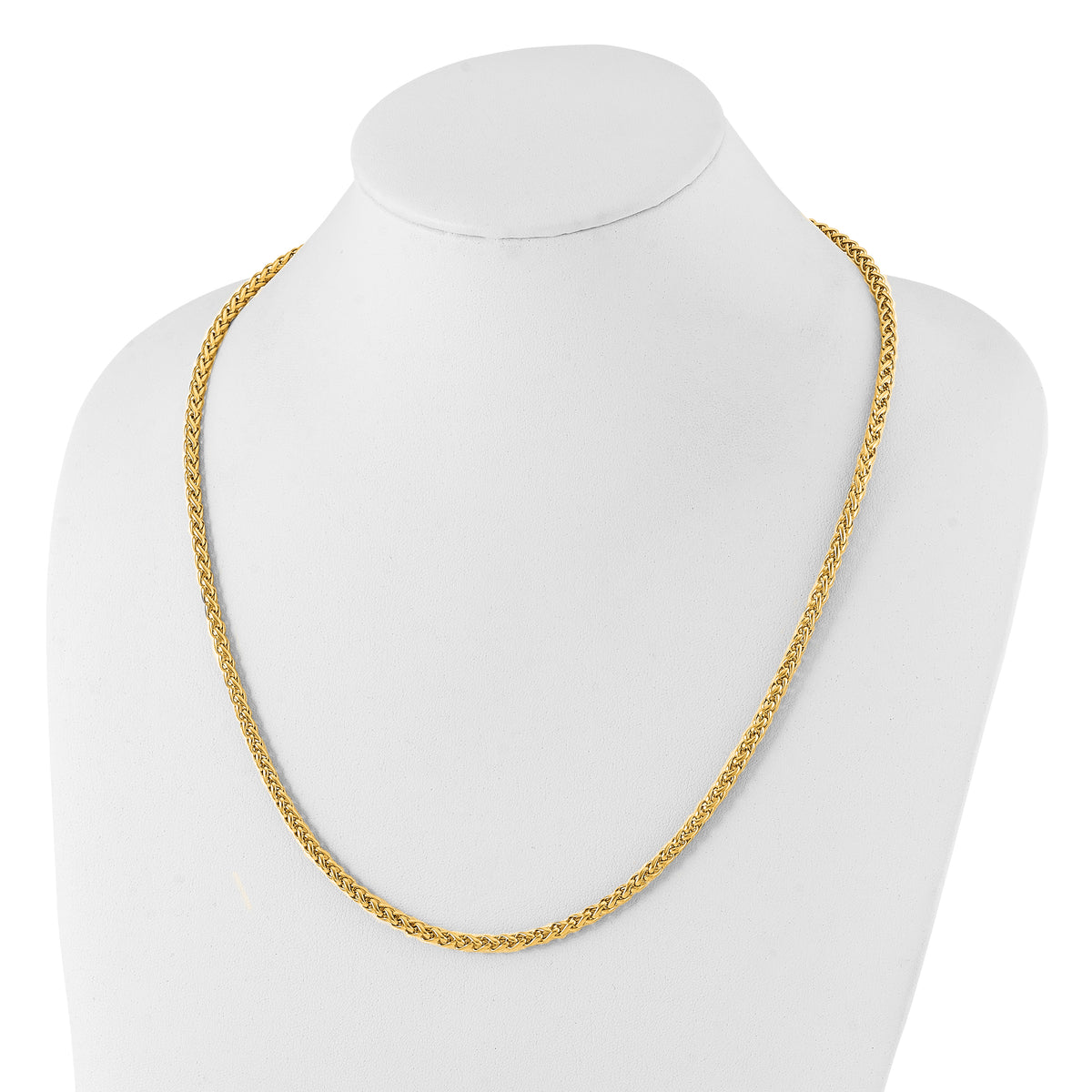 Stainless Steel Polished Yellow IP 24in Spiga 4mm Chain Necklace