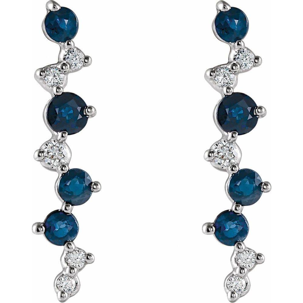 14K White Gold Blue Sapphire & Diamond Earrings – 1/10 CTW Natural Elegance