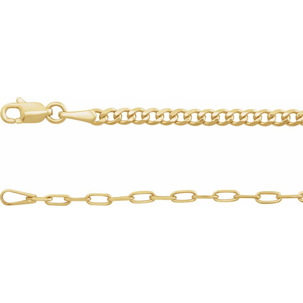 14K Yellow 2.7mm Curb & Paperclip-Style 18" Chain | Polished Solid Gold, Lobster Clasp