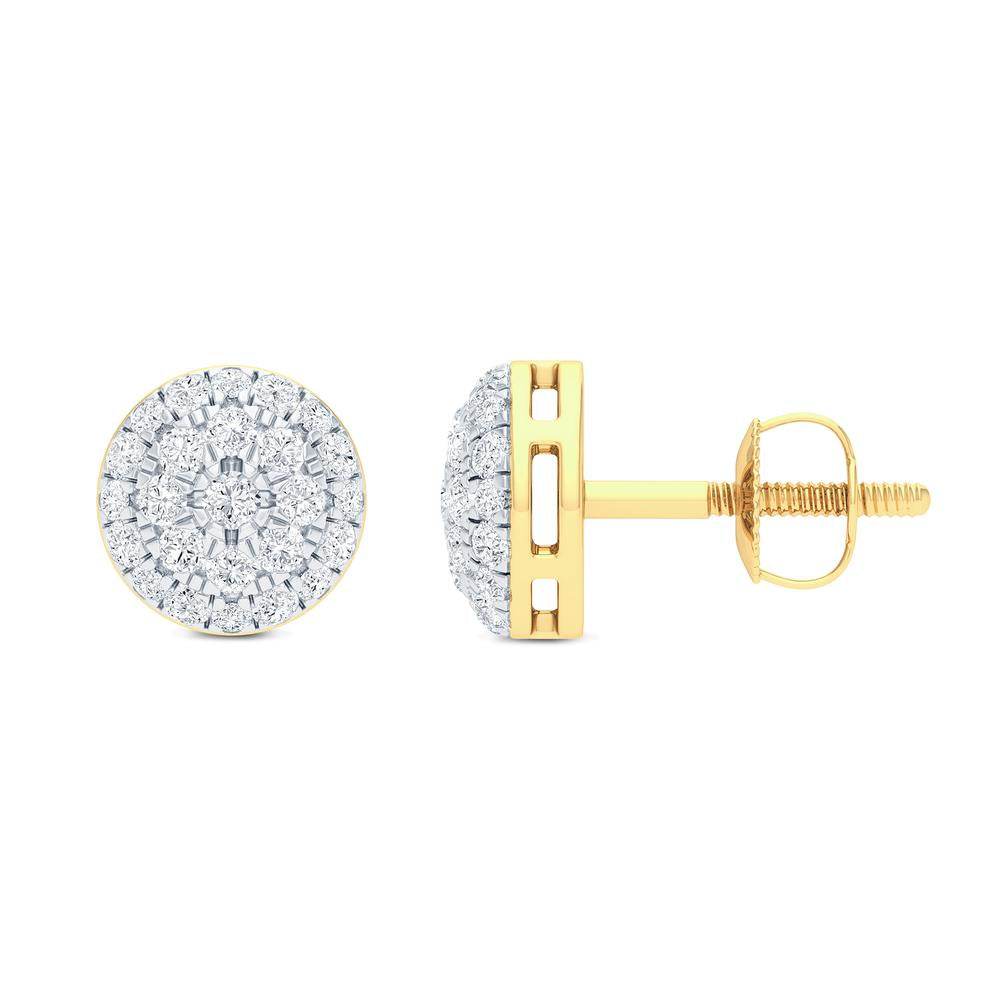 Indulge in the luxurious allure of our 10K Yellow Gold Round Earrings, boasting 0.72 Carat Diamonds of dazzling diamonds. Expertly crafted to captivate attention, these earrings exude sophistication and glamour. Elevate your style with the timeless elegance of these radiant accessories.