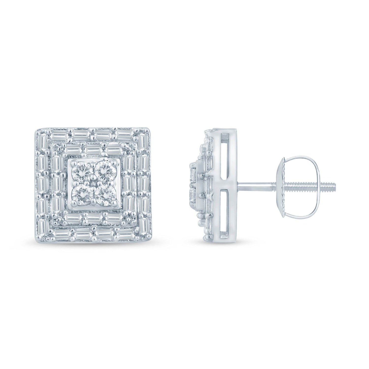 10 Karat White Gold 0.75 Carat Diamond Square Earrings