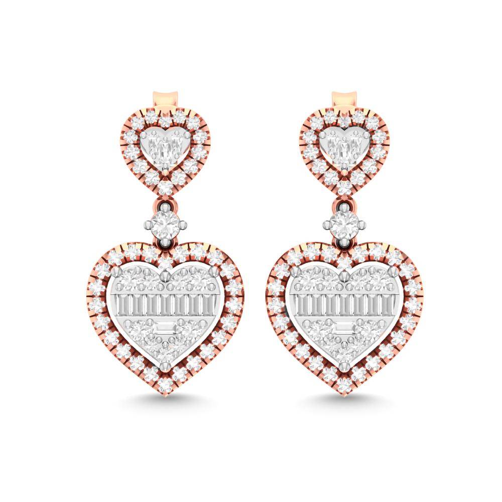 Unit price per14 Karat Two-Tone (Rose and White) Gold 0.90 Carat Diamond Heart Earrings