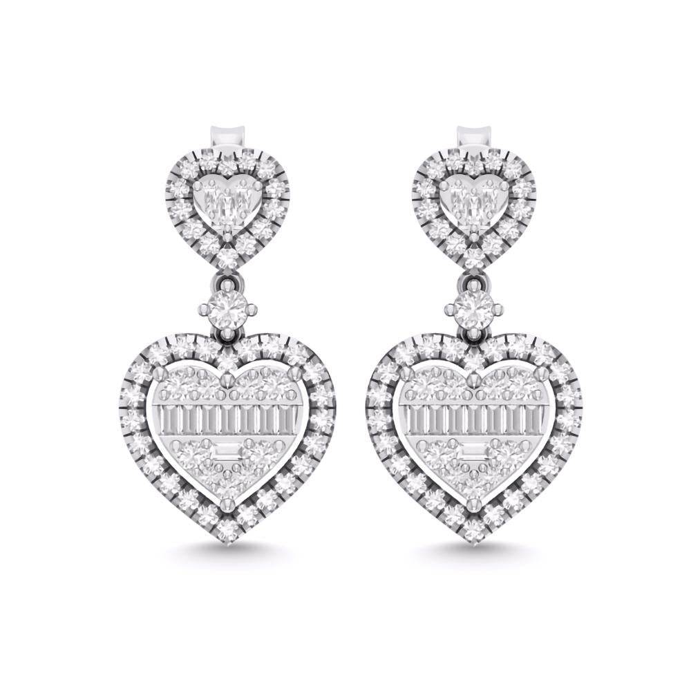 Unit price per14 Karat White Gold 0.90 Carat Diamond Heart Earrings