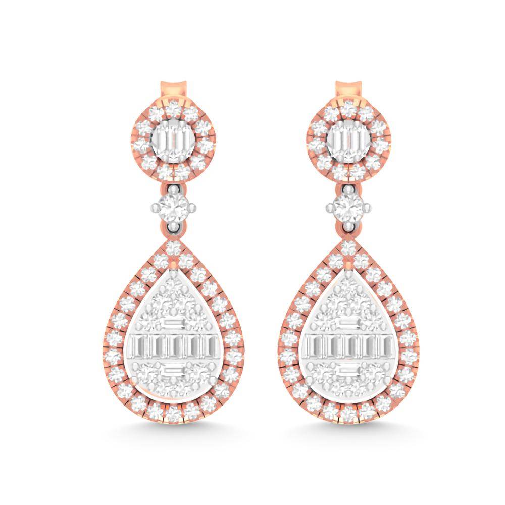 Unit price perEmbrace sophistication with our captivating 14K Two-Tone Gold Pear Dangling Earrings, blending rose and white hues and featuring a stunning 0.90 Carat Diamond centerpiece. Crafted to sway with elegance, these earrings exude timeless charm, perfect for adding a touch of glamour to any ensemble.