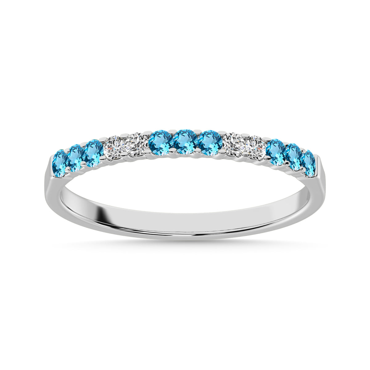 14K White Gold 1/4 Ct.tw Alternate 9 Blue Topaz & 4 Diamond Machine Band